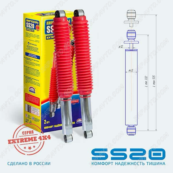Амортизаторы задней подвески 2121, 2131 Нива SS20 EXTREME 4X4 AT однотрубные 2шт